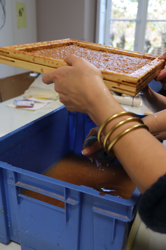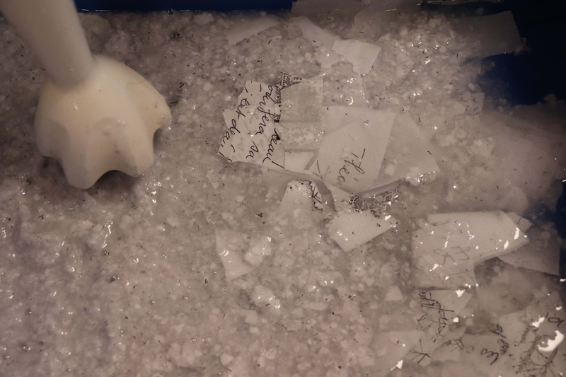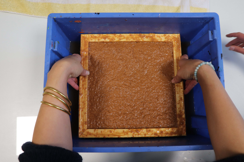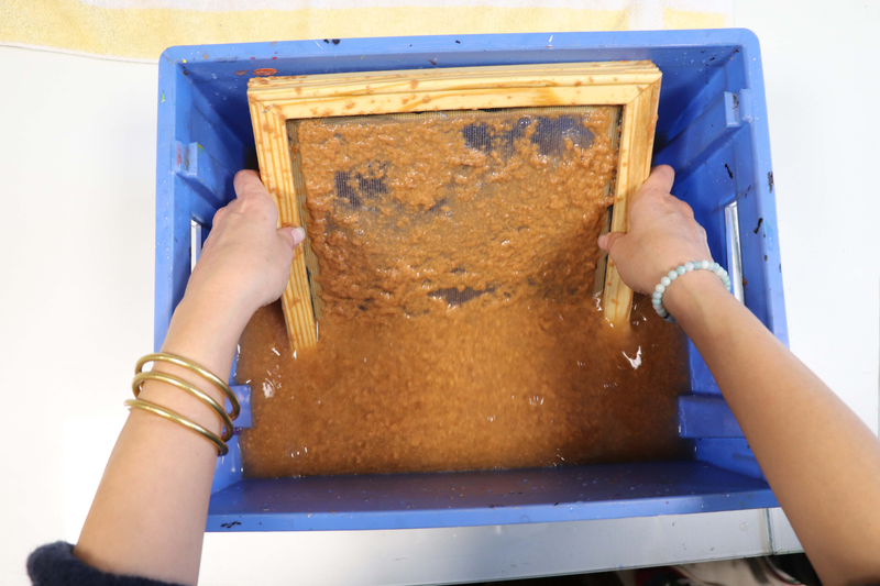 Passer la pulpe de papier au tamis