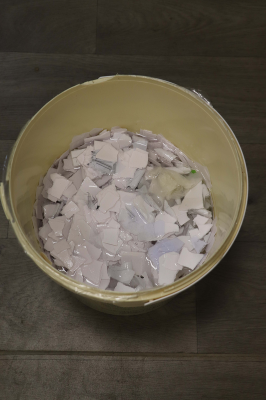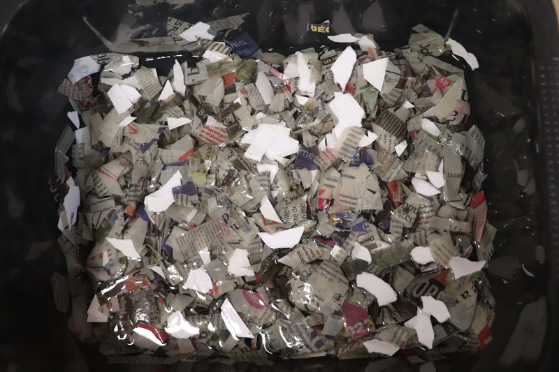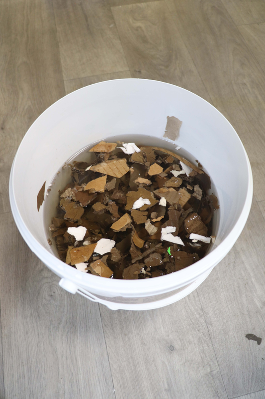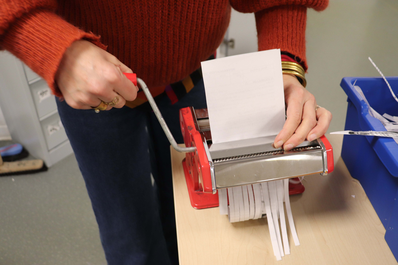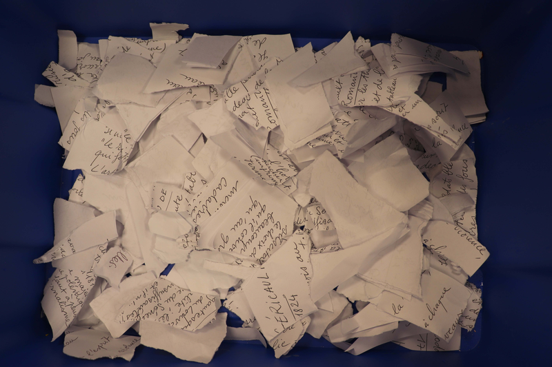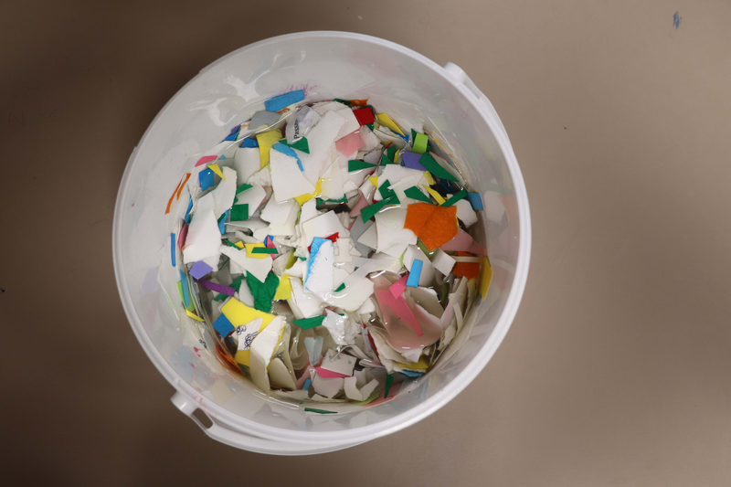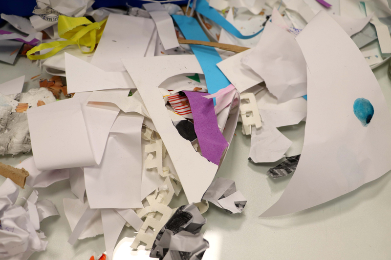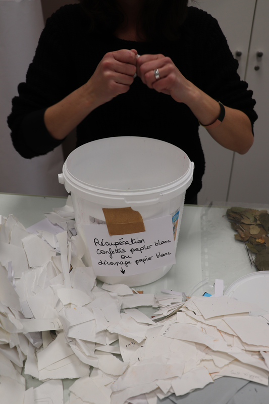 Dans la classe, une poubelle ou un seau indique aux élèves d'y jeter leurs découpages