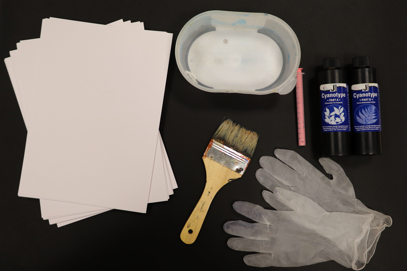 Pour faire du cyanotype vous aurez besoin du matériel ci-dessus.