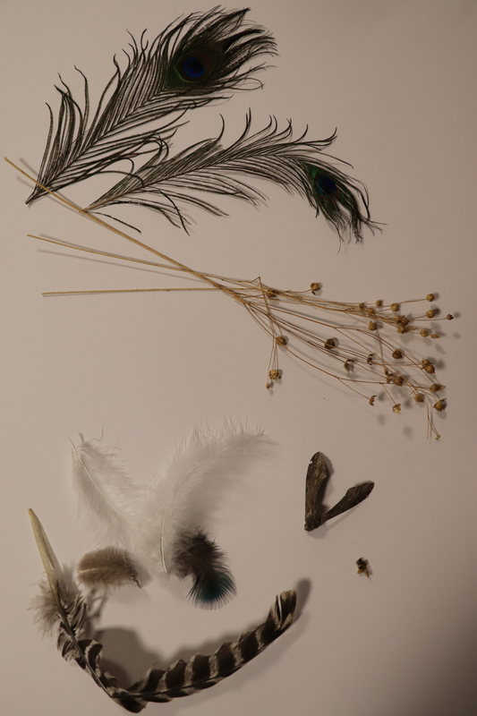 Les objets peuvent être utilisés afin d'organiser/composer les images. Leur matérialité et textures seront révélées par le cyanotype (dentelle, plume, grillage...).