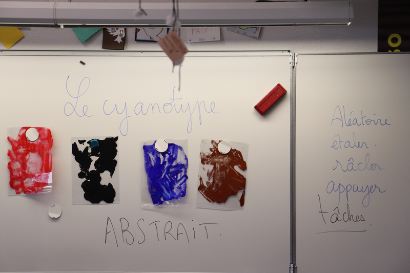 Mais l'heure tourne, il faut passer à la suite, après discussion sur ce qui a été fait. Une verbalisation sur l'aléatoire et des références artistiques non figuratives sont montrées.
